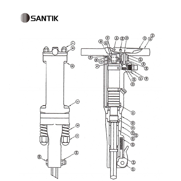 The paving breaker B87C utilizes compressed air as its driving force, delivering powerful performance for concrete reinforcement and the efficient breaking of rocks and asphalt. The compressed air is alternately distributed through a precision-designed valve system to both ends of the cylinder assembly, generating a strong reciprocating motion. This motion drives the hammer to strike the shank of the steel chisel via the tappet, effectively driving the chisel into the concrete foundation and splitting it into large sections. Engineered for superior power, efficiency, and durability, this breaker offers an extended service life. It excels in crushing large, thick, and hard materials, making it the ideal tool for demanding foundation construction projects, including mining, bridgework, road construction, and municipal infrastructure development.